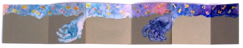 We're given a hand up to a dream skyscape filled with inventions. This mural of encouragement leaves the lower part open to graffiti that can periodically be removed without damage to the details at the top.